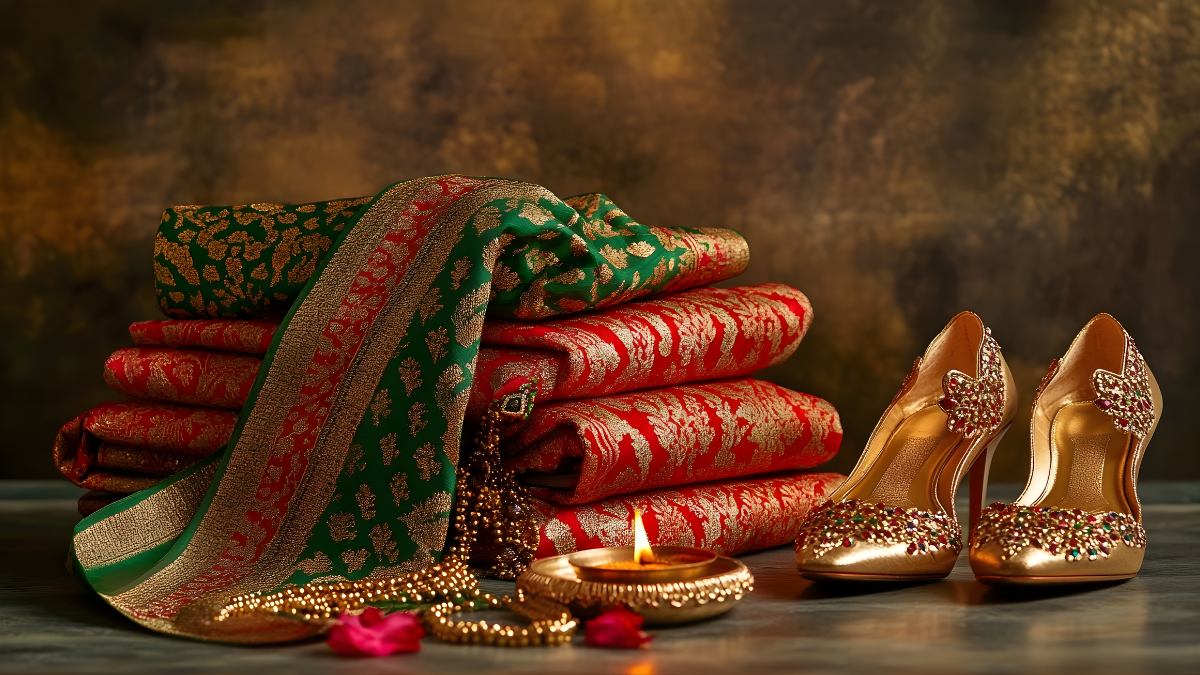 - காலணிகள்: புடவை கட்டுவதற்கு முன்பே உங்கள் ஹீல்ஸ் (Heels) காலணிகளை அணிந்து கொண்டு உயரத்தைச் சரிபார்த்துப் புடவையைக் கட்டுங்கள்.