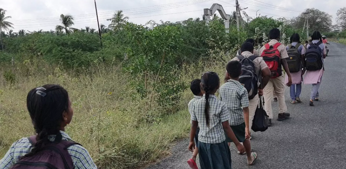 இந்த நிலையில் 22 ஆம் தேதி அரசு பேருந்துக்காக மாணவர்கள் காத்திருந்தனர். ஆனால் வெகு நேரமாகியும் பேருந்து வரவில்லை என்பதால் மாணவர்கள் பள்ளிக்கு நேரமானதால் பல கிலோமீட்டர் தூரம் நடந்தே சென்றனர்.